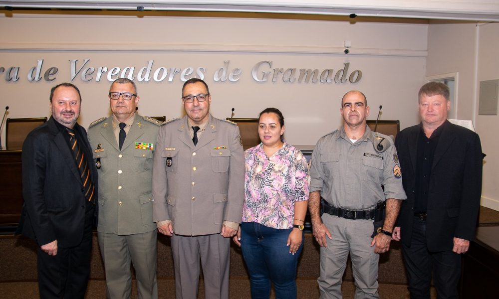 Picada Café/Gramado – Prefeito Luciano Klein, presidente da Câmara de Vereadores, Adriane Marconi Mielke, vereador Ello Bauer e o comandante da Brigada Militar local, Sargento Cristiano de Britto, prestigiaram a solenidade de passagem comando ocorreu na terça-feira, em Gramado. O 1º Batalhão de Policiamento em Áreas Turísticas (1º BPAT) realizou a solenidade de passagem de comando, onde o Tenente Coronel Cezar Augusto Chaves, recebeu o comando da Unidade, substituindo o Tenente Coronel André Lima da Silva. O evento ocorreu na Câmara de Vereadores de Gramado. O Tenente Coronel Chaves, chegou ao Batalhão na metade de fevereiro deste ano, antes estava na função de Chefe de Gabinete do Comando-Geral da Brigada Militar, em Porto Alegre.