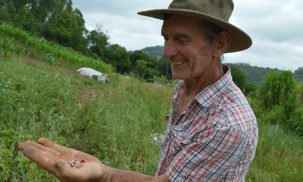 Outra preservação importante está relacionada as sementes crioulas. Inúmeras variedades pouco conhecidas na região são mantidas vivas por ele ao longo dos anos. São feijões com colorações diferentes, milhos, tubérculos, entre outras variedades. Ciclo após ciclo são geradas novas sementes que são cultivadas e preservadas pela família Falkoski. “Algumas sementes eu chego a congelar para realizar o plantio no ano seguinte. A técnica de submeter a baixas temperaturas diminui a chance de gerar alguma doença na planta”, afirma. O agricultor demonstra alguns dos feijões cultivados no Travessão Rübenich. Ele explica que não somente as cores diferenciam algumas das variedades, o sabor também não é igual as opções convencionais encontradas no mercado. Diferença essa já observada e atestada por diversos clientes que já experimentam os grãos crioulas e plantados em sistema agroecológico.