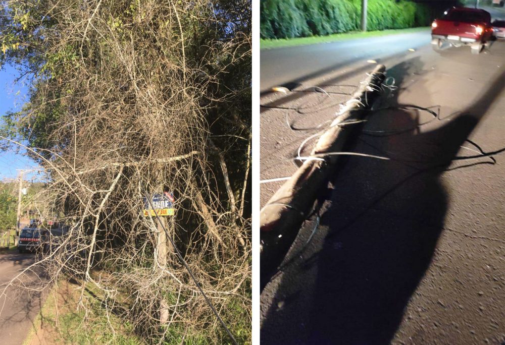 Na Rua Cambará do Sul, bairro União, há 13 dias os moradores denunciam outra situação que também coloca em risco a segurança das pessoas e animais que ali transitam. Um poste que sustentava os cabos da rede telefonica arrebentou na noite da quinta para a sexta-feira, dias 25 e 26 de maio, e até ontem de manhã ainda não havia sido solucionado. Servidores da Prefeitura estiveram no local e fizeram a sinalização. Mas a comunidade cobra a substituição imediata.