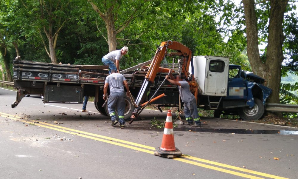 Caminhão colide frontalmente contra árvore na BR-116 em Morro Reuter