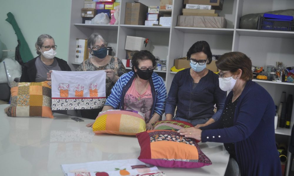 Uma técnica utilizada pela professora em Ivoti é a do patchwork, que trabalha com retalhos de tecidos para fazer almofadas, panos de prato e outros artigos. Segundo as alunas, o curso é uma maneira para aprender coisas novas, mas também para fazer amizades, trocar ideias e confraternizar.