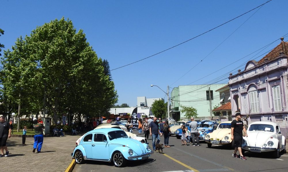 Estância Velha – Na manhã deste domingo, 26, a área central já estava movimentada com a exposição de carros antigos, que segue até às 18h.