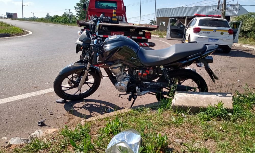 O acidente ocorreu na alça de acesso à ERS-239. O motociclista teve escoriações e foi levado ao Hospital Geral, em Novo Hamburgo, pela SAMU do município vizinho.