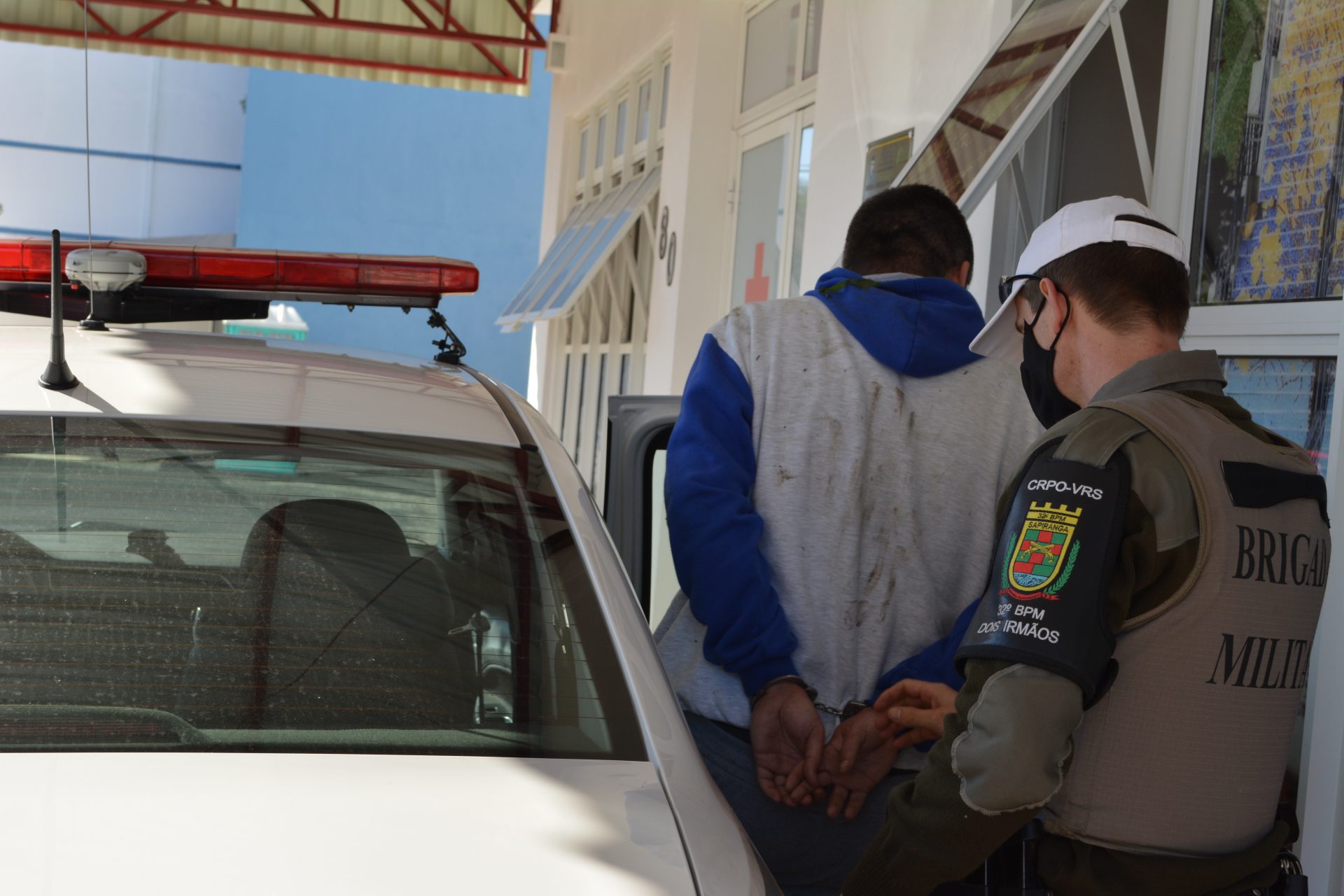 Ao colidir contra a Saveiro que vinha no sentido Capital/interior, o preso tentou fugir passando por uma das propriedades próximas mas, foi capturado pelos policiais que já estavam perseguindo o mesmo. Ele foi encaminhado para a delegacia de Dois Irmãos, onde está sendo o feito o registro da ocorrência. A prisão aconteceu as 8h40, minutos após o roubo.