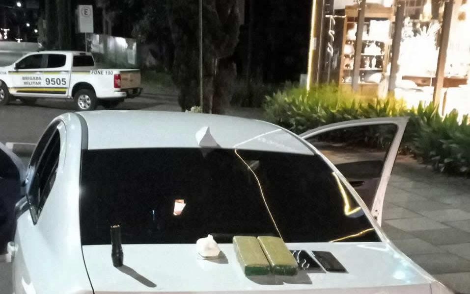 Nova Petrópolis – A Brigada Militar prendeu dois homens por tráfico de drogas na noite de ontem, 7, na Av. XV de Novembro. No veículo em que estavam, havia 1,1 kg de maconha e ainda 115 gramas de cocaína. O condutor, de 28 anos, possui antecedentes por estelionato e tráfico de drogas.