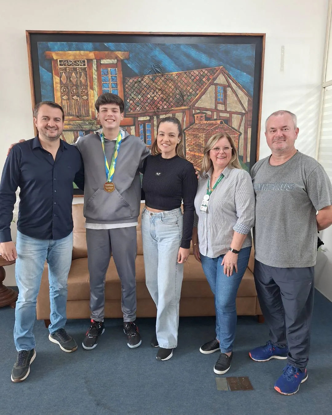 A convite do Departamento de Desporto de Dois Irmãos, Pedro, acompanhado da sua mãe, Tatieli Klein Moraes Seefeld, esteve, na terça-feira (22/04), na Prefeitura para contar um pouco da sua trajetória e para receber os parabéns. Eles foram recebidos pelo prefeito Jerri Meneghetti, pela secretária de Educação, Denise Maria Maldaner, e pelo professor do Desporto, Astério Mombach.