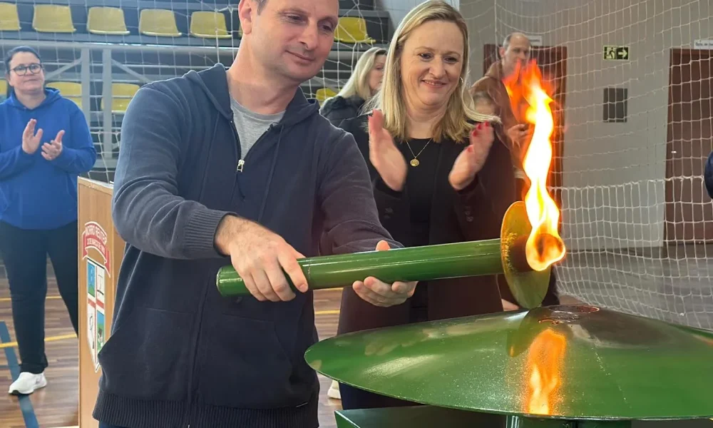A chama que simboliza a abertura dos jogos, após passar pelos representantes das escolas, foi entregue ao prefeito que acendeu a pira declarando abertos os jogos escolares 2025, organizados pela prefeitura por meio do Departamento Municipal de Desporto. Em julho, as disputas são nas modalidades câmbio e vôlei; em agosto, xadrez e pingue-pongue; em setembro, futsal e em outubro, atletismo. Participam alunos das escolas municipais Edvino Bervian, Francisco Weiler, Rui Barbosa e Tiradentes e da escola estadual João Wagner.