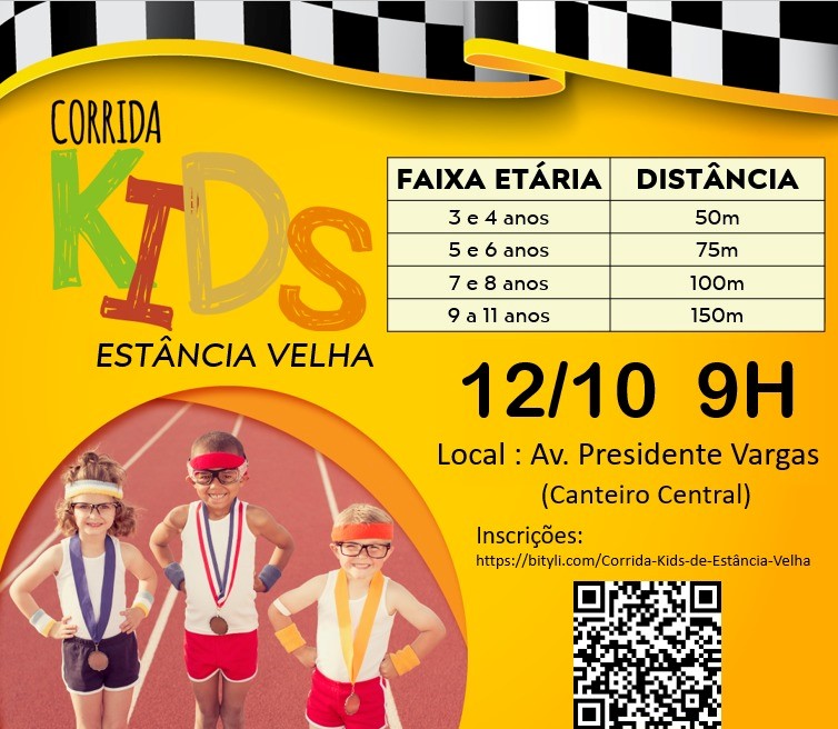 Estância Velha – A CMD – Coordenadoria Municipal de Desporto em parceria com o Sesc estão com inscrições para a 1ª Corrida Kids do município, para crianças nascidas de 2011 a 2019. O evento será no Dia da Criança (12 de outubro), a partir das 9h, na avenida Presidente Vargas.