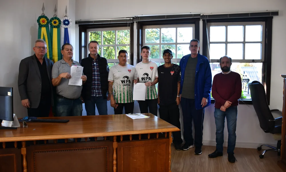 A Prefeitura de Nova Petrópolis formalizou, na manhã de quarta-feira, 14 de maio, uma parceria com a Associação Esporte Clube Nova Petrópolis, por meio do Termo de Fomento nº 062/2025. O objetivo é incentivar o desenvolvimento das categorias de base do futebol de campo no município.