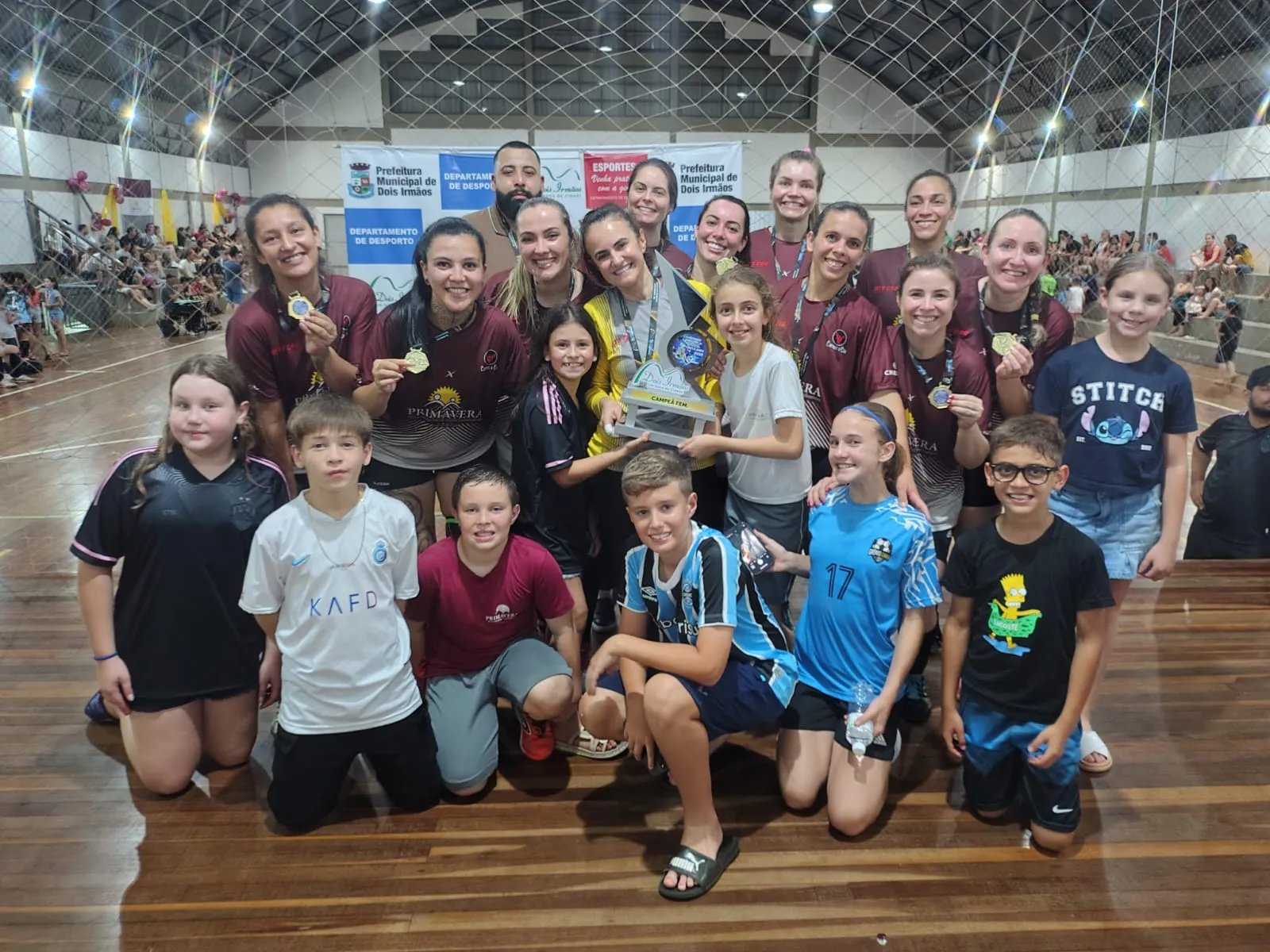 Dois Irmãos – O público que esteve no Ginásio Escola Municipal de Ensino Fundamental (EMEF) Arno Nienow, na noite da última quinta-feira (27/11), para acompanhar as partidas finais nas categorias feminina e masculina do Futsal de CPMs e APMs, acompanharam bons jogos. A equipe feminina da EMEF Primavera e a masculina da EMEF Carlos Rausch sagraram-se campeões.