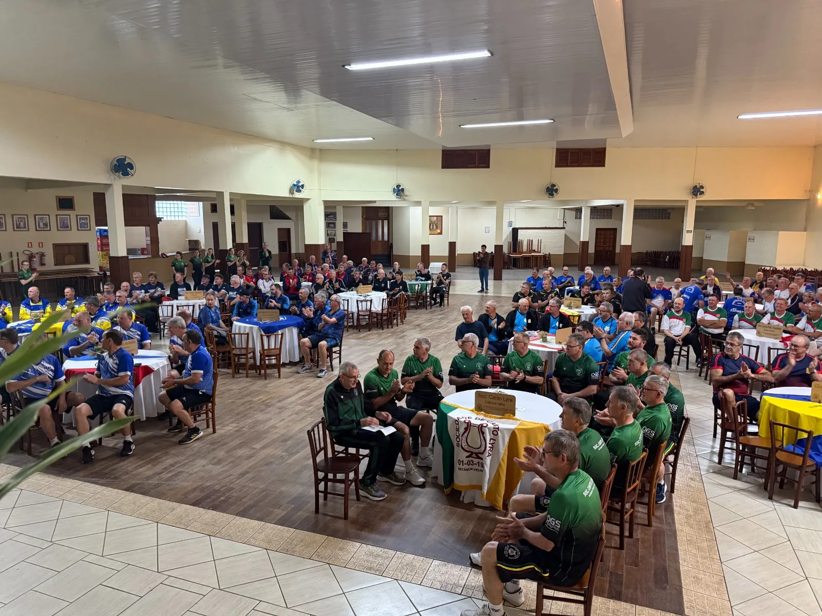 Estância Velha está representada pela equipe da Sociedade de Canto Lyra no 8º Campeonato Estadual de Bolão – Bola 23 – Série Ouro Master Masculino. A competição ocorre neste fim de semana, de 3 a 5 de outubro, na sede da sociedade, no bairro Lira, localizada na Rua Portão, 1883. Cerca de 200 atletas, distribuídos em 16 equipes, participaram da abertura oficial na manhã desta sexta-feira (3).