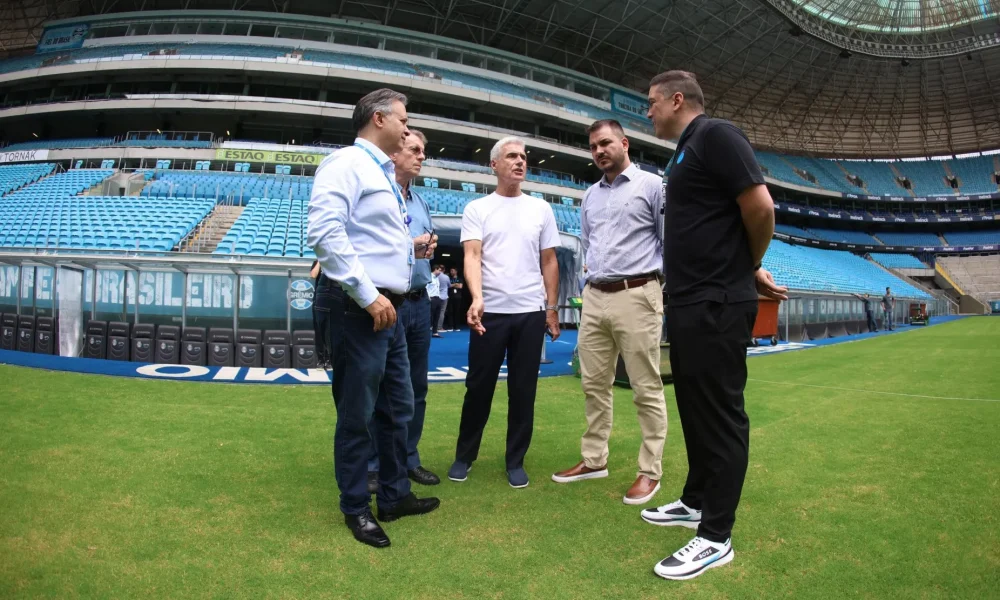 Luís Castro tem primeiro contato com as estruturas da Arena do Grêmio