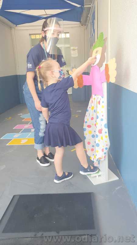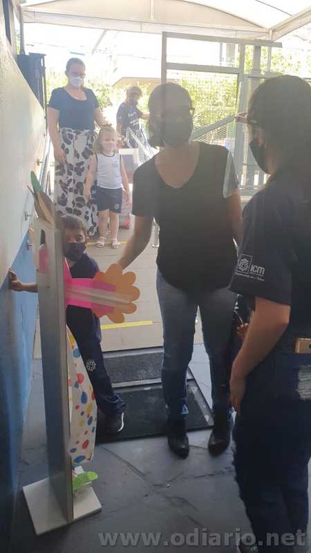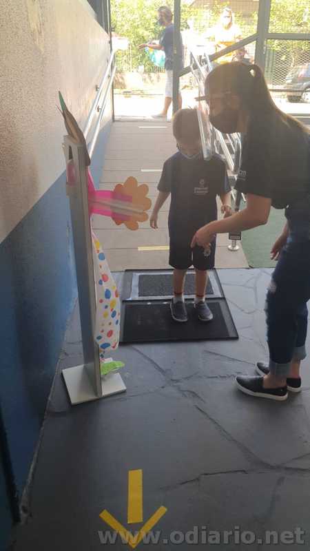 A entrada e permanência dos alunos na instituição atende às orientações do Plano de Contingência com uma série de protocolos como aferição de temperatura, passagem pelo tapete sanitizante e higienização das mãos com álcool gel. Para entrar nas salas de aula é preciso trocar o calçado ou usar um propé.
