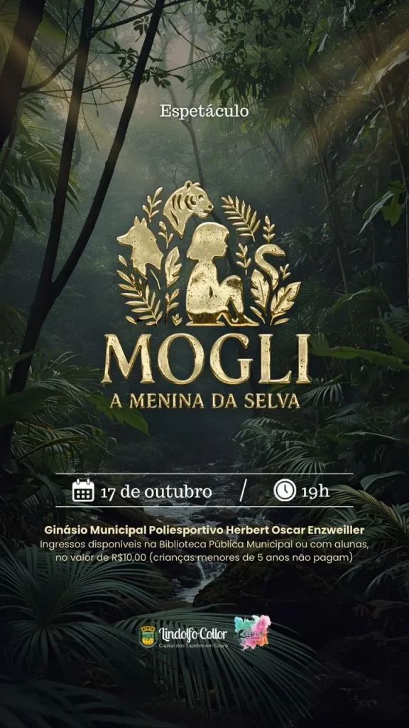 Lindolfo Collor – O encanto da floresta e a força da arte se unem no espetáculo “Mogli: A Menina da Selva”, apresentado pela Cia Municipal de Dança Corpus, no próximo 17 de outubro, às 19h, no Ginásio Municipal Poliesportivo Herbert Oscar Enzweiller.