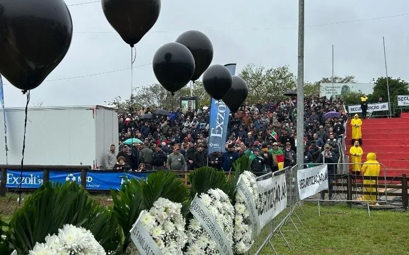 Estado – Na abertura oficial da 48ª Expointer, realizada nesta sexta-feira (5) no Parque de Exposições Assis Brasil, em Esteio, agricultores de diversas regiões do Rio Grande do Sul realizaram um protesto com coroas de flores e balões pretos em homenagem a produtores que perderam a vida sob pressão de dívidas agrícolas.