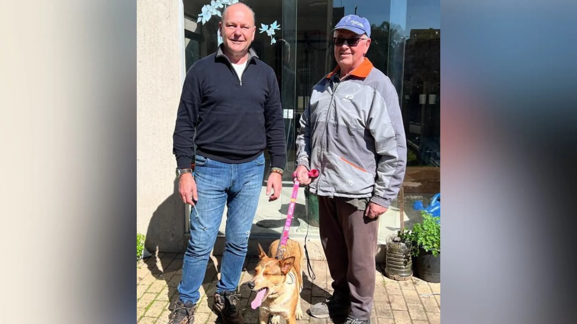 O novo tutor é seu Nelson, morador de Estância Velha, que havia perdido sua parceirinha de quatro patas há algum tempo. Ao conhecer a história de Eva por indicação de Clóvis — que também aparece com ele na foto —, decidiu abrir seu coração e sua casa para recebê-la.
