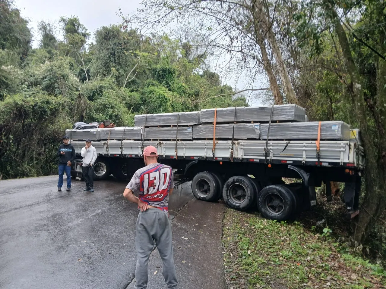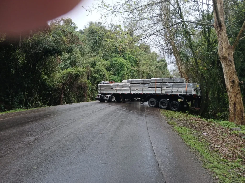 Caminhão trava e trecho sentido Ivoti/Presidente Lucena fica bloqueado
