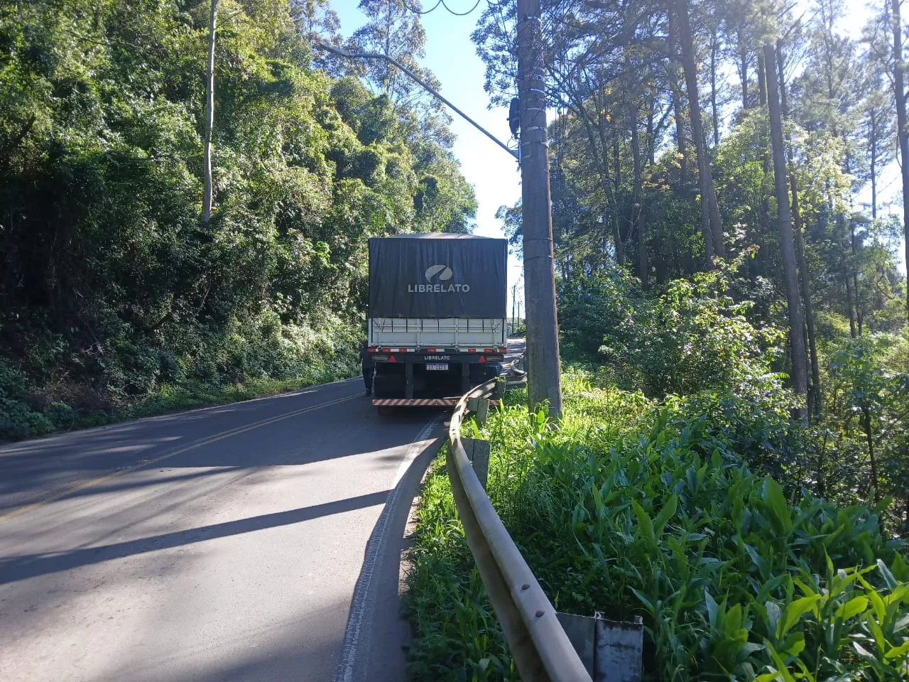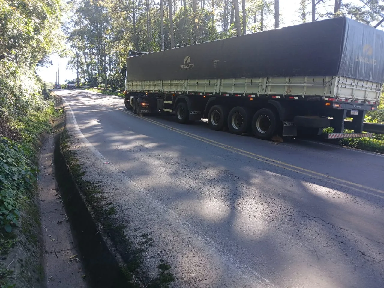 Carreta estragada ocupa faixa da VRS-873 em Morro Reuter