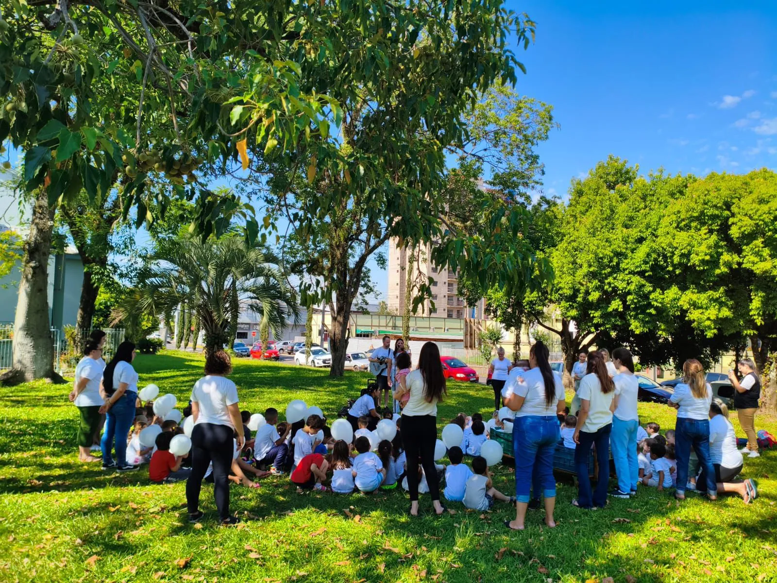 Na manhã desta quinta-feira, 27, a Escola de Educação Infantil Beija Flor, de Estância Velha, promoveu um momento especial em homenagem ao Dia de Ação de Graças. A atividade ocorreu no gramado em frente à instituição e reuniu crianças, famílias e equipe escolar em um encontro marcado pela união, pela leveza e pela gratidão.