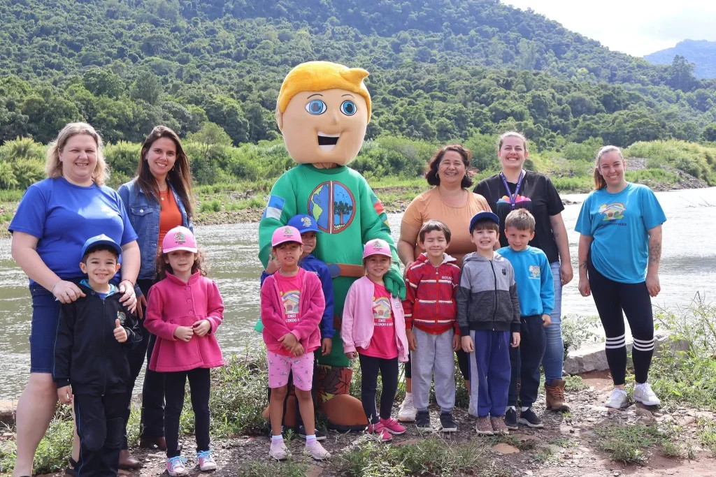 Os alunos da Escola Municipal de Educação Infantil Construindo o Saber participaram, na manhã desta terça-feira (16), de uma ação que vai além da educação: o plantio de árvores às margens do Rio Caí, com o objetivo de recompor a mata ciliar da região. A iniciativa contou com o apoio do projeto Grün-Mann – Homem Verde.