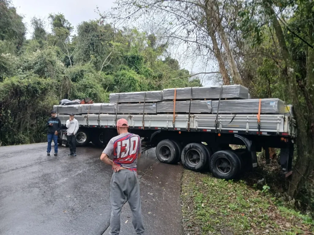 Ivoti/Presidente Lucena – Trânsito continua fechado no trecho sentido Ivoti/Presidente Lucena devido um caminhão que não conseguiu subir a Rua Presidente Lucena, no trecho Nova Vila sentido Ivoti/Presidente Lucena, próximo ao acesso ao Núcleo de Casas Enxaimel. Com isso, a passagem ficou totalmente obstruída.