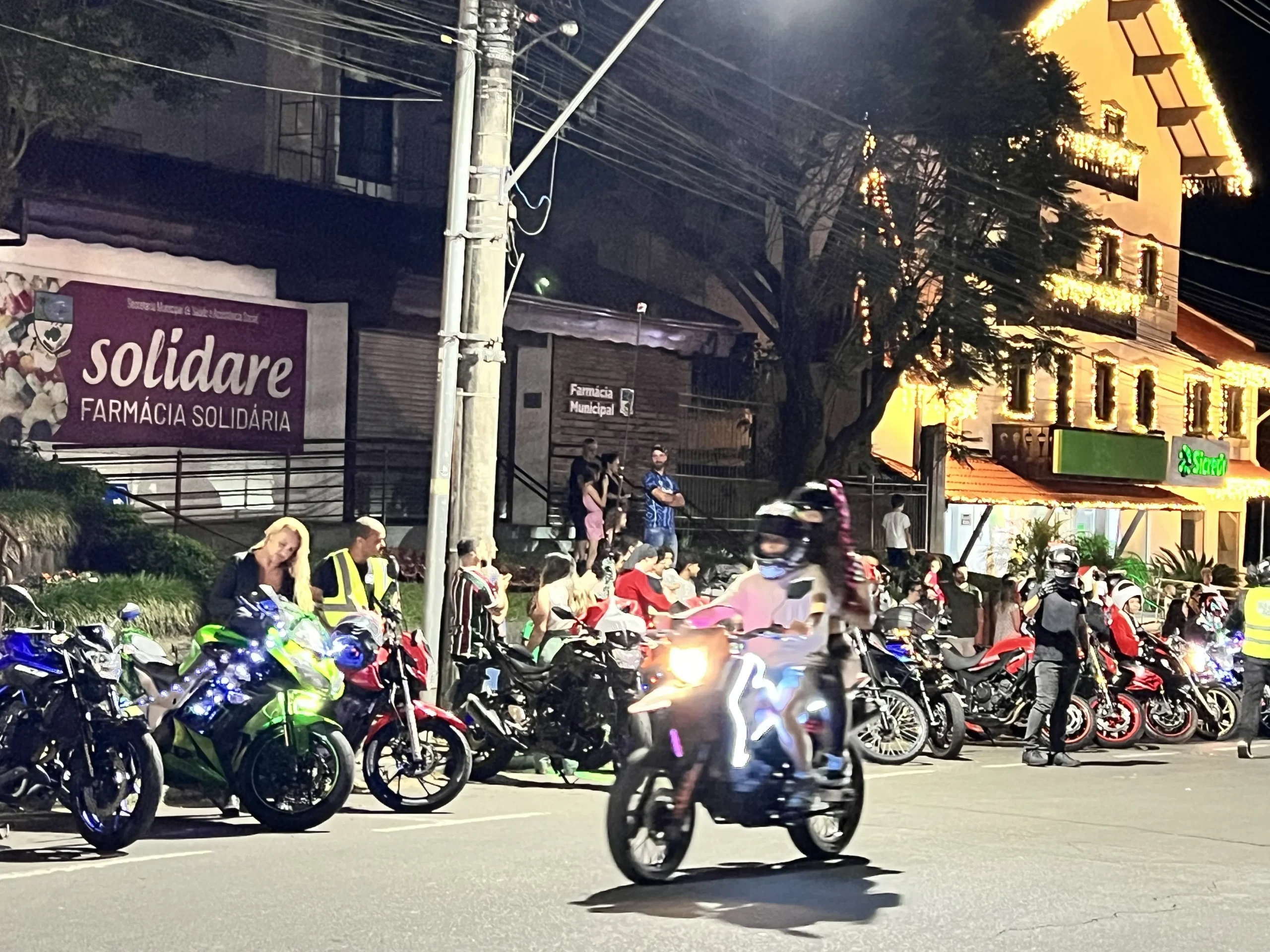 Com motos decoradas com elementos natalinos e iluminação especial, o desfile integrou o espírito da programação, reunindo famílias, moradores e visitantes que prestigiaram o encerramento das atividades da noite. A ação reforçou o clima festivo e marcou mais um momento de participação popular dentro da programação oficial do evento.