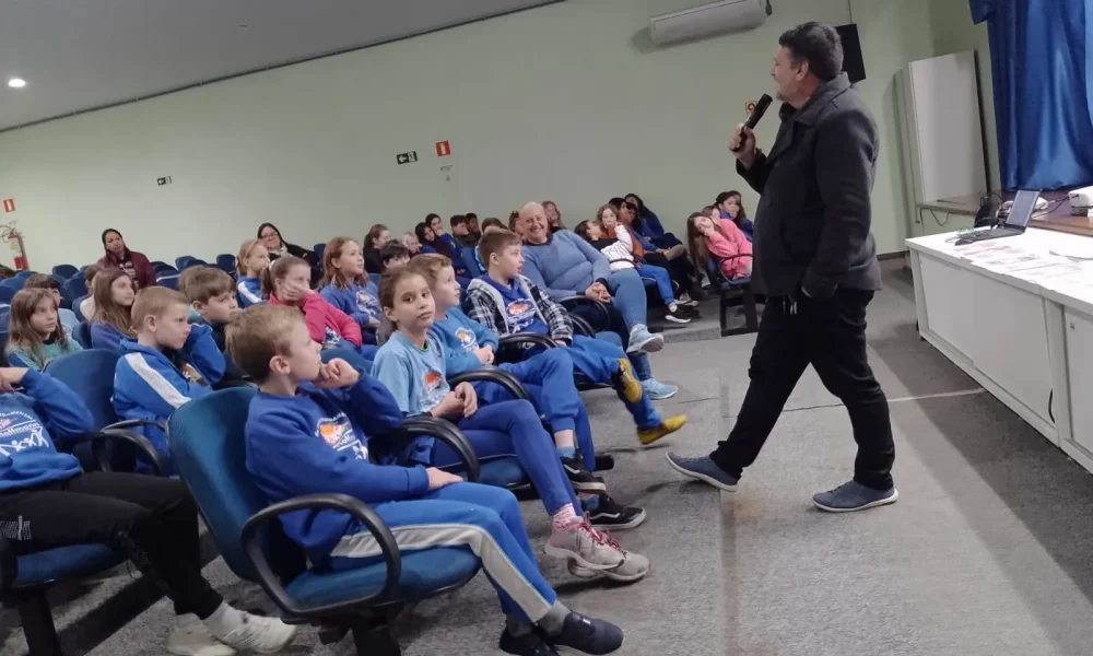 Já na quinta-feira, 14, foi a vez do escritor Antônio Schimeneck, natural de Tupanciretã (RS) e residente em Porto Alegre, interagir com os estudantes do 4º ao 9º ano. Schimeneck, reconhecido por sua literatura infantil, juvenil, suspense, terror e fantasia, possui uma sólida formação em Letras pela Unisinos, com especialização e mestrado pela UFRGS, e já recebeu prêmios importantes, como o Selo Altamente Recomendável da Fundação Nacional do Livro Infantil e Juvenil, o Catálogo de Bolonha e o Prêmio Açorianos de Literatura. Suas obras também fazem parte do Programa Biblioteca Itaú e do PNLD Literário.