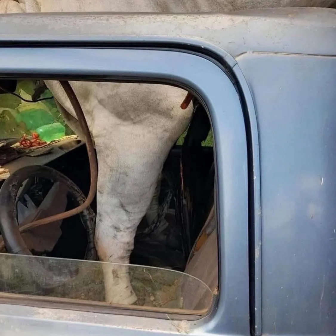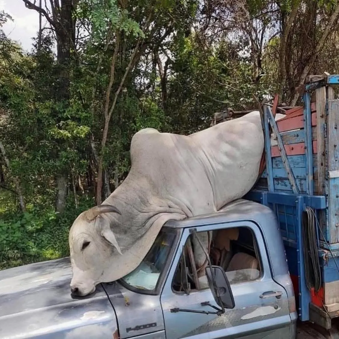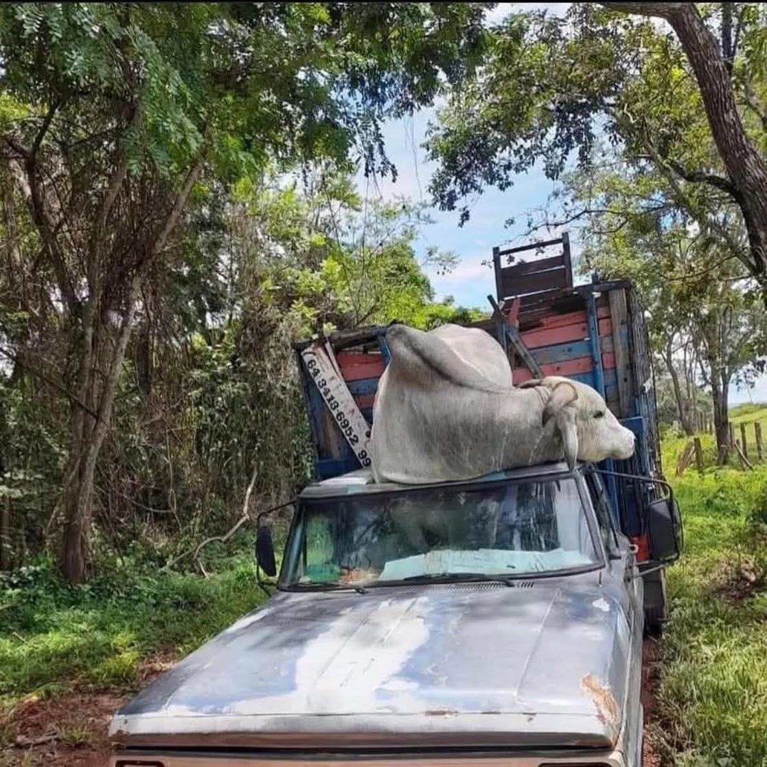 Uma cena inesperada surpreendeu moradores do interior de Minas Gerais nesta semana. Um senhor transportava seu boi, conhecido por ser bravo e agitado, quando o animal não se conteve dentro da gaiola de contenção. Em um momento de fúria, o boi arrebentou a estrutura e acabou caindo diretamente sobre a cabine do caminhão.