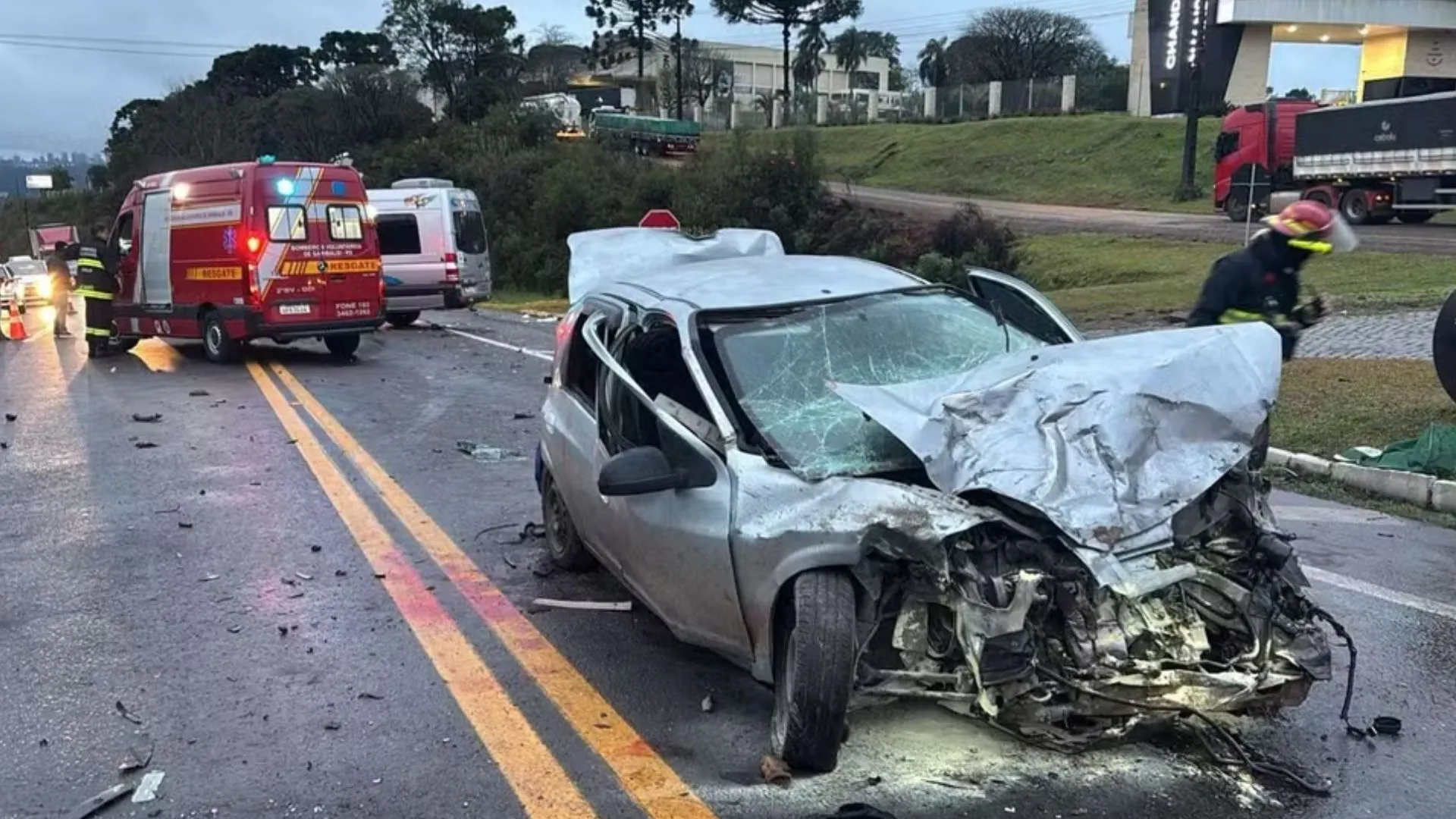 Ainda conforme os relatos, após a colisão frontal entre a van e o carro, um caminhão acabou atingindo a traseira do veículo de passeio.