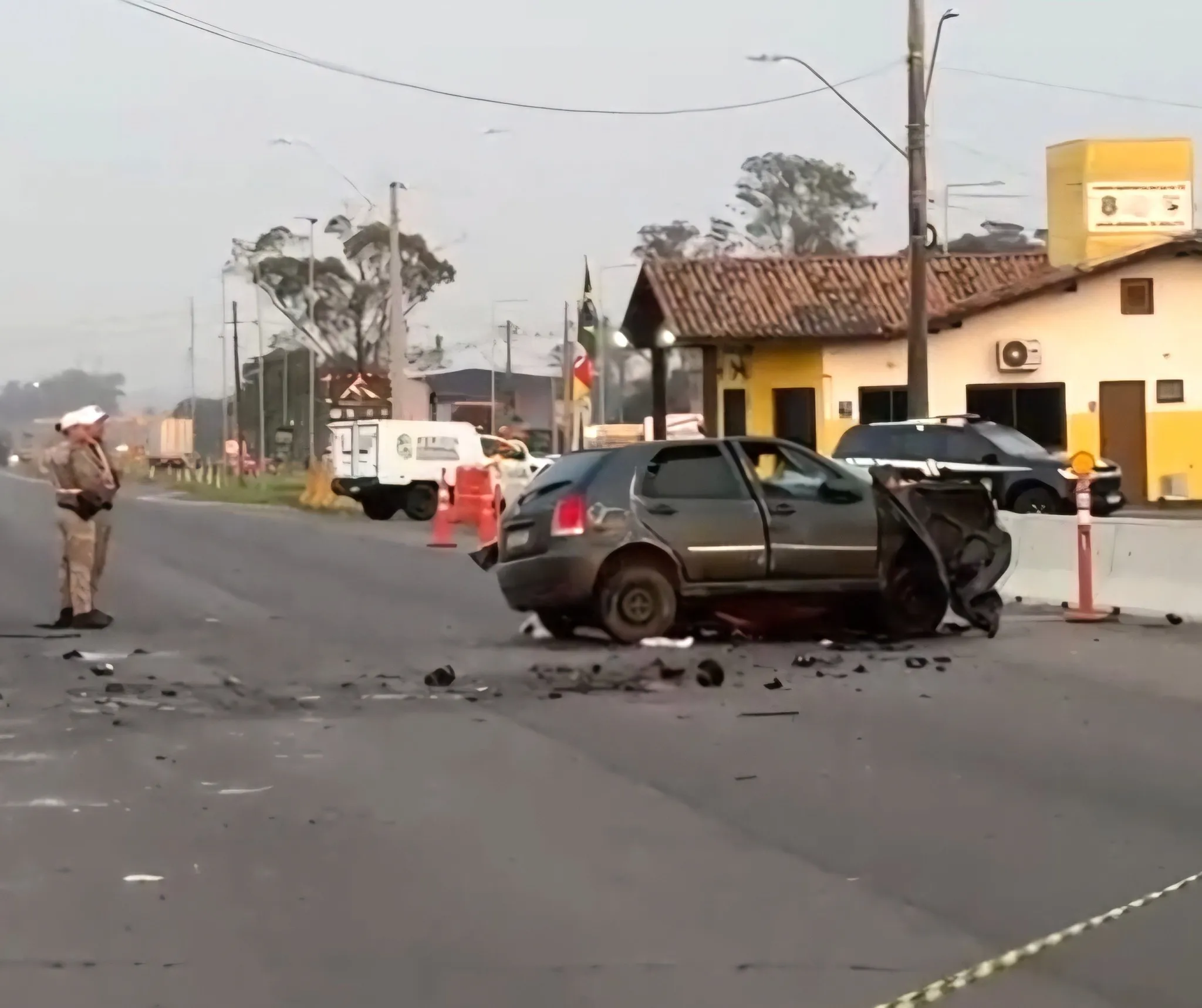 Segundo o Corpo Rodoviário da Brigada Militar (CRBM), a colisão ocorreu por volta das 5h, no km 11 da rodovia, entre Gravataí e Sapucaia do Sul, ao lado do posto rodoviário. O veículo, emplacado em Coxilha, ficou destruído pelas chamas. Após o combate ao incêndio, os policiais encontraram dois corpos dentro do automóvel. As vítimas ainda não foram identificadas.