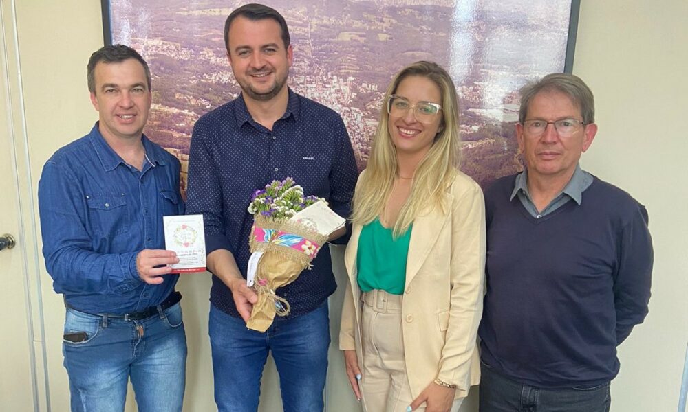 Dois Irmãos – Na última quinta-feira ,13, o prefeito Jerri Meneghetti e o vice-prefeito Juarez Stein receberam a comitiva de Ivoti: prefeito Martin Kalkmann e a diretora de Turismo, Raiama Trenkel, que convidaram para a 15ª Feira das Flores de Ivoti. O evento ocorre nos dias 21, 22, 23, 28, 29 e 30 de outubro de 2022, no Núcleo de Casas Enxaimel (Rua da Cascata, bairro Feitoria Nova). A solenidade de abertura oficial está marcada para as 19h30 do dia 21 de outubro.