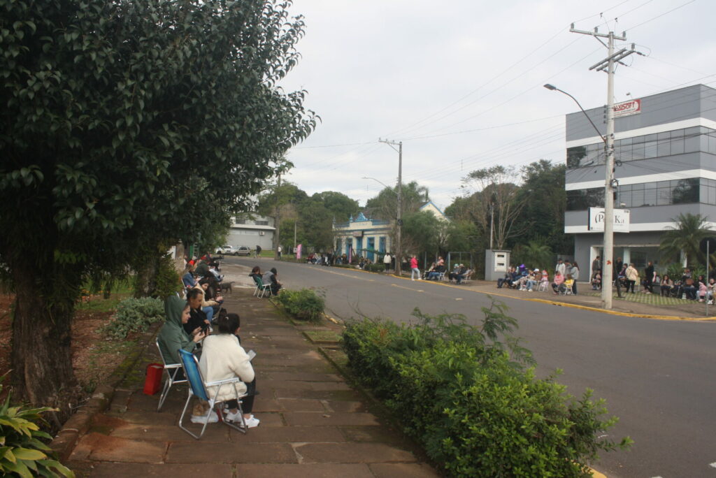 O público compareceu em grande número, ocupando as calçadas ao longo da Avenida Presidente Lucena e da Rua São Leopoldo. As pessoas se acomodaram confortavelmente em suas cadeiras, preparadas para aproveitar o espetáculo que estava por vir. O chimarrão, também marcou presença, sendo compartilhado entre amigos e familiares, criando uma atmosfera de convívio e harmonia.