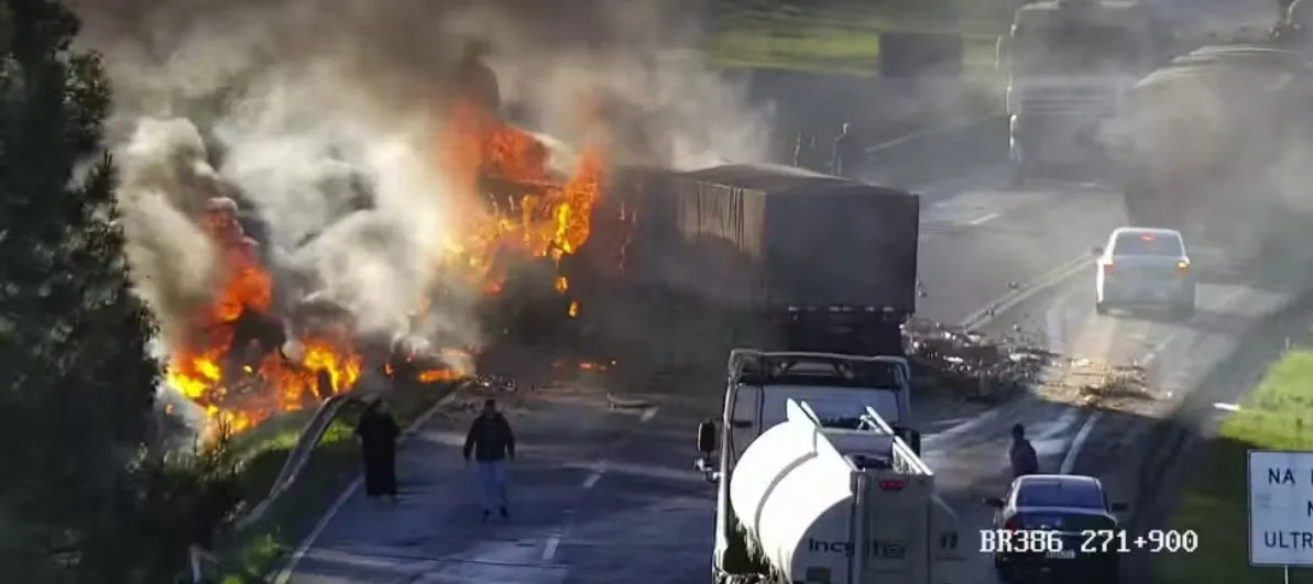 Um grave acidente foi registrado na manhã desta quinta-feira (23), por volta das 6h08, no km 272 da BR-386, em Fontoura Xavier, nas proximidades do Parque de Eventos. A colisão envolveu um caminhão VW 11.180, de Carlos Barbosa, que transportava carga de hortifruti, e um bitrem Scania R440, de Arroio do Meio, carregado com farelo de soja.