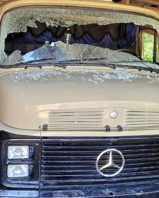 Os motoristas de dois caminhões e de dois ônibus procuraram a PRF e mostraram fotos dos veículos danificados ao passarem por aquele local.