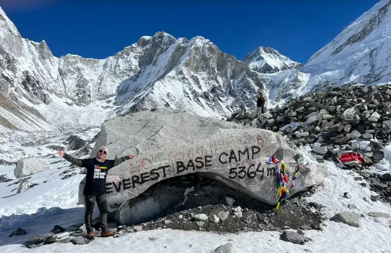 A gaúcha Marina Gabriela Brum Rodrigues, 44 anos, protagonizou uma história de superação ao percorrer sozinha a trilha até o Campo Base do Everest, no Nepal, após sobreviver a um infarto que comprometeu 90% do funcionamento do seu coração.