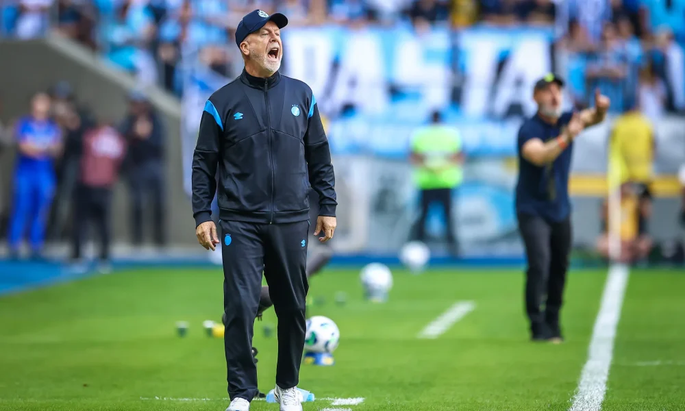 O Grêmio voltou a tropeçar no Brasileirão e se complicou na tabela. No sábado (13), diante de uma Arena lotada, o Tricolor perdeu para o Mirassol por 1 a 0 e ficou a apenas três pontos da zona de rebaixamento. A pressão aumenta sobre Mano Menezes, já que o time pouco evoluiu em campo e o goleiro adversário quase não foi exigido. Além da derrota, o clube soma desfalques importantes: Kannemann levou o terceiro amarelo e está fora do Gre-Nal, enquanto Braithwaite sofreu grave lesão no tendão e deve perder a temporada. Em contrapartida, Carlos Vinícius e Marcos Rocha devem retornar, e William está sendo preparado para o clássico.