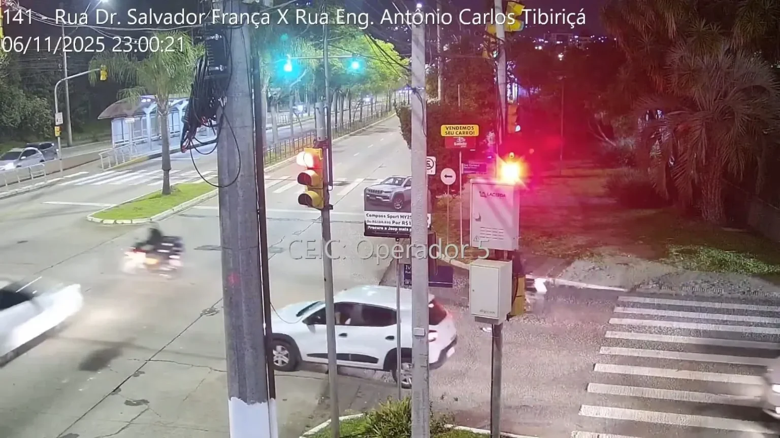 O condutor do carro foi conduzido à delegacia logo após o acidente e, conforme as autoridades, não possuía Carteira Nacional de Habilitação (CNH). Imagens de câmeras de segurança da região foram recolhidas e encaminhadas à perícia.
