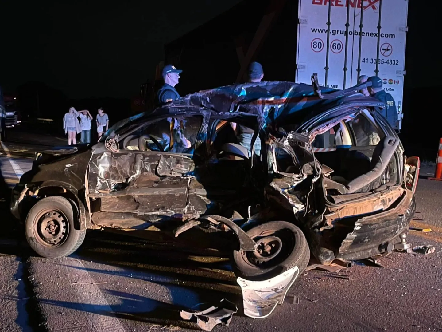 A colisão envolveu um automóvel Corsa, emplacado em Não-Me-Toque, e um caminhão com placas de São José dos Pinhais, no Paraná. De acordo com informações da Polícia Rodoviária Federal (PRF), o carro tentava realizar uma conversão à esquerda na rodovia quando foi atingido pelo caminhão.