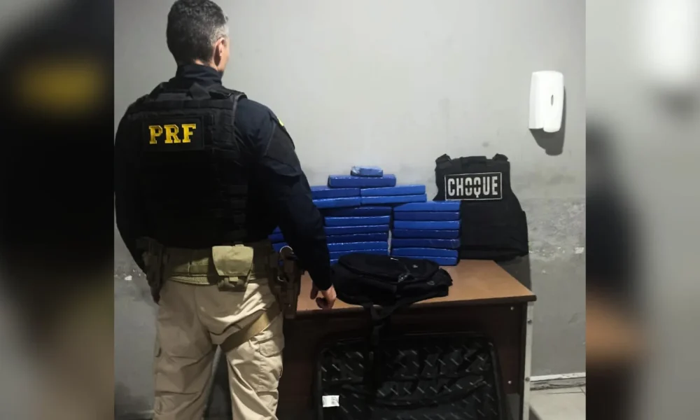 Durante a fiscalização, os agentes localizaram a droga no interior da bagagem do suspeito. A maconha estava acondicionada em tabletes, totalizando 22 quilos do entorpecente.