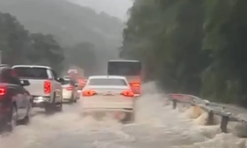 Imagens divulgadas nas redes sociais mostram carros sendo tomados pela água em bairros como a Coloninha e o trânsito comprometido no Morro dos Cavalos, na BR-101. A concessionária responsável pela rodovia alertou para a possibilidade de interdição preventiva, por questões de segurança.