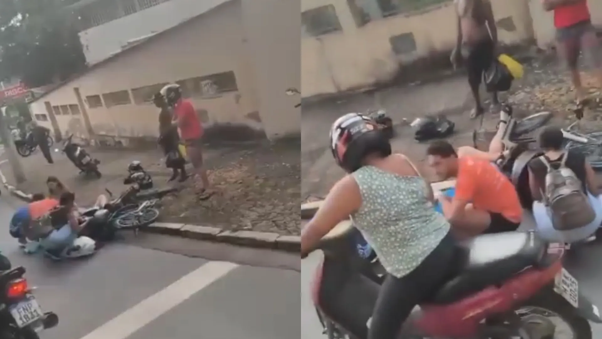 Durante o atendimento à vítima, uma motociclista que trafegava pela via perdeu o equilíbrio ao tentar observar a ocorrência e acabou caindo sobre pessoas que auxiliavam nos primeiros socorros. Um vídeo gravado por terceiros registrou a situação e mostra a indignação de populares diante da cena.