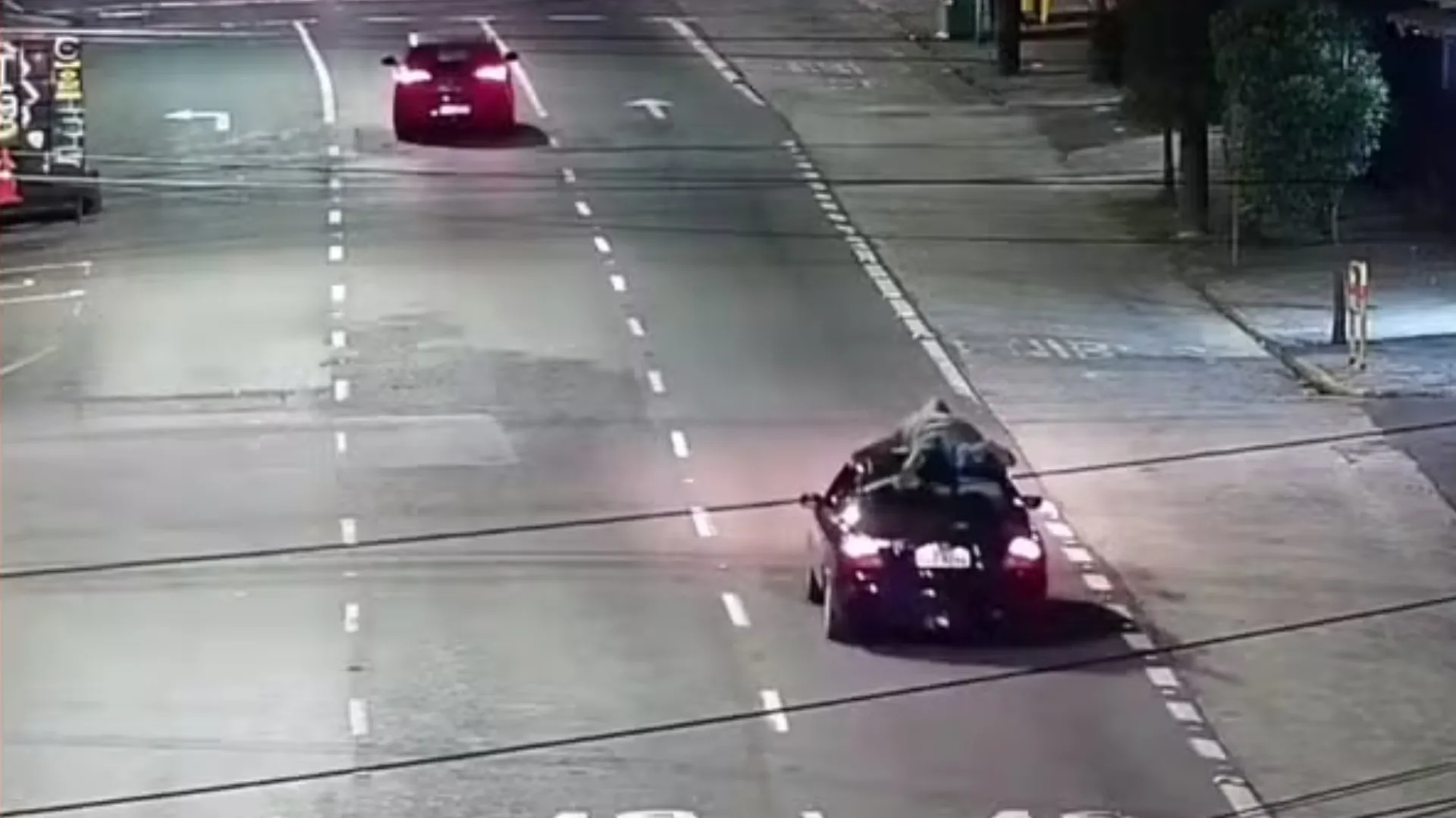 Uma cena inusitada foi registrada pelas câmeras de monitoramento da Prefeitura na madrugada de domingo (14), por volta das 4h20. As imagens mostram um homem sendo transportado no teto de um carro que trafegava pela Rua Moreira César, no bairro Pio X.