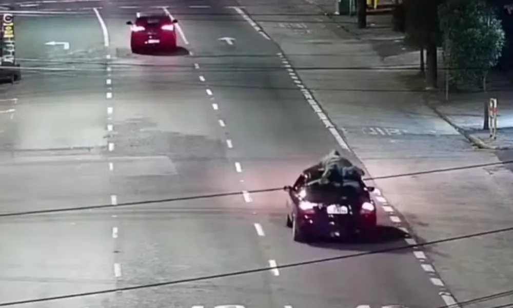 Uma cena inusitada foi registrada pelas câmeras de monitoramento da Prefeitura na madrugada de domingo (14), por volta das 4h20. As imagens mostram um homem sendo transportado no teto de um carro que trafegava pela Rua Moreira César, no bairro Pio X.