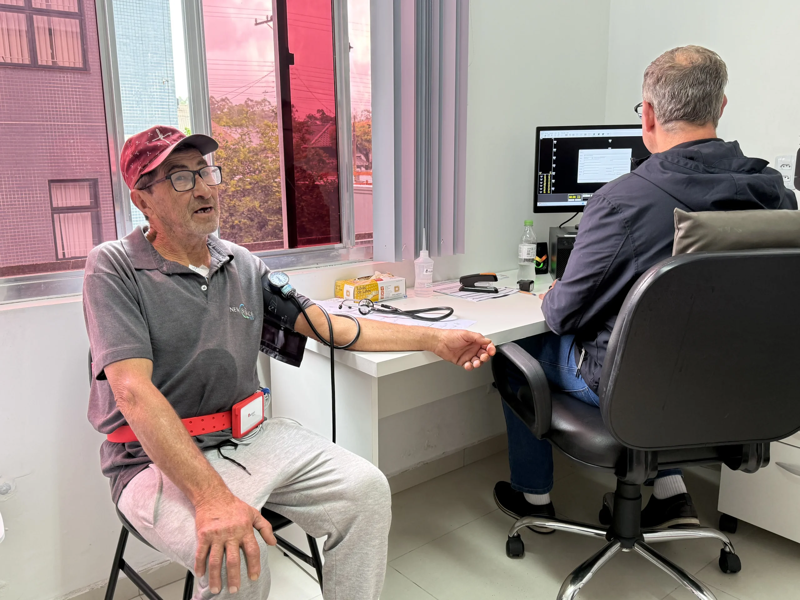 ESTÂNCIA VELHA – Um teste simples, mas tão importante que pode salvar vidas. O teste ergométrico, encaminhado por médicos especialistas, foi o foco do novo mutirão de atendimento do programa Saúde Mais Perto, da Prefeitura de Estância Velha. Os testes serviram para deixar pessoas mais tranquilas, como a aposentada Maria Nilda Immig, 65, moradora do Floresta, que saiu do exame dizendo que estava tudo “dentro do padrão”, e também para acender o alerta para outros, como o morador do Campo Grande, Rui Leomar Manske, de 67, que já saiu do exame com uma consulta agendada com um cardiologista. “Essa semana já vou voltar aqui no Centro de Especialidades para aprofundarmos a situação”, citou.