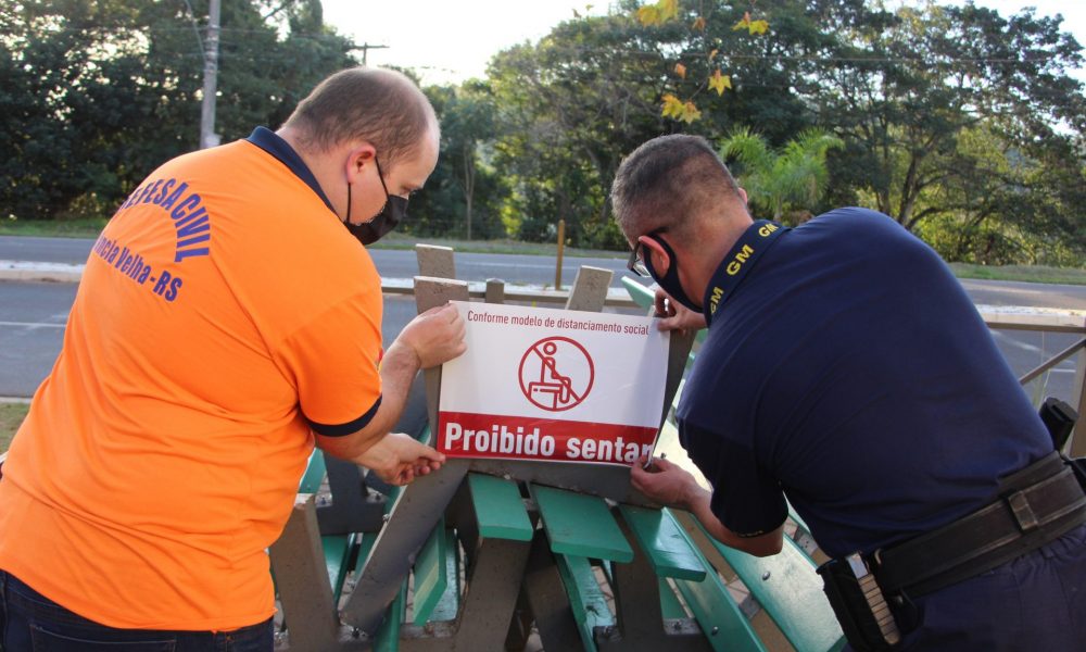 Estância Velha – Na tarde de ontem, Guarda Municipal e Defesa Civil retiraram bancos de áreas públicas do município. A intenção da ação é conscientizar a população para que evite aglomerações. Um dos locais que teve seus bancos retirados foi o Paradouro, no acesso do Centro, onde as pessoas se reúnem para tomar chimarrão. Os bancos foram todos amontoados e só serão repostos no final da pandemia.
