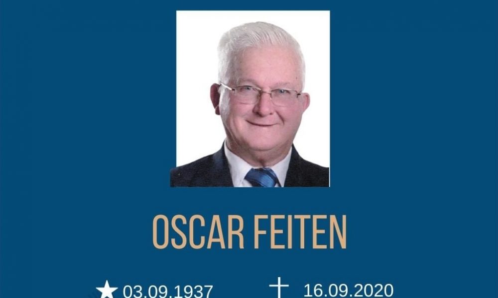 Notícias Faleceu Oscar Feiten em Dois Irmãos 17/09/2020 - 09h30min Dois Irmãos – Faleceu Oscar Feiten, 83 anos. O velório está acontecendo na Capela Municipal e o sepultamento será nesta quinta-feira, 17, às 16h, no Cemitério Católico I. (Funerária Schaumloeffel). Tópicos Relacionados:Faleceu Oscar Feiten