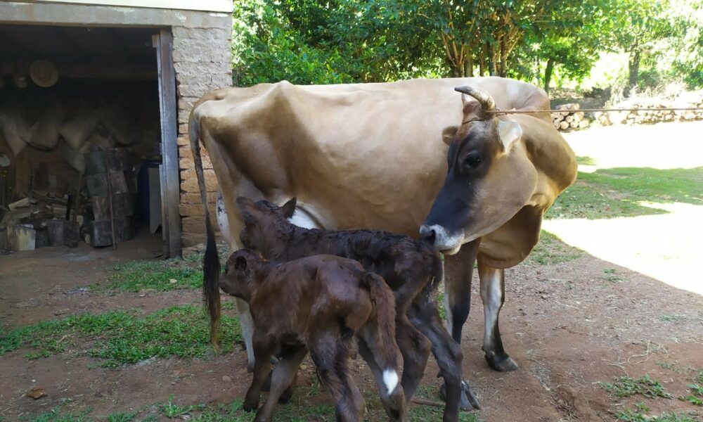 Santa Maria do Herval – No dia 6 de fevereiro o agricultor Inácio Kroetz, da Linha Marcondes, teve uma surpresa: a vaca da raça Jersey deu à luz gêmeos; são dois machos, fortes e saudáveis . Foi a primeira vez que algo assim aconteceu na propriedade – onde durante toda sua vida trabalha. É a terceira gestação da vaca de raça Jersey, que deu à luz através de inseminação de Angus.