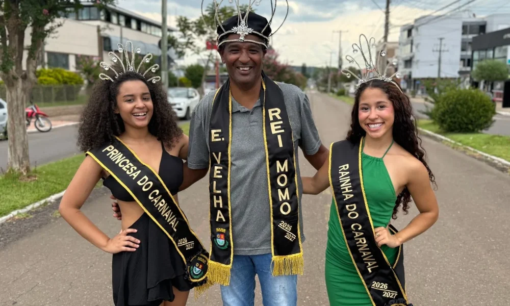 Isabella Klein, 18 anos, foi eleita Rainha do Carnaval 2026. Maria Fernanda Rosas Marques, 19 anos, recebeu o título de Princesa. Ao lado do Rei Momo Edson Lobão, elas farão sua estreia oficial na Avenida Presidente Vargas durante o desfile do dia 21.