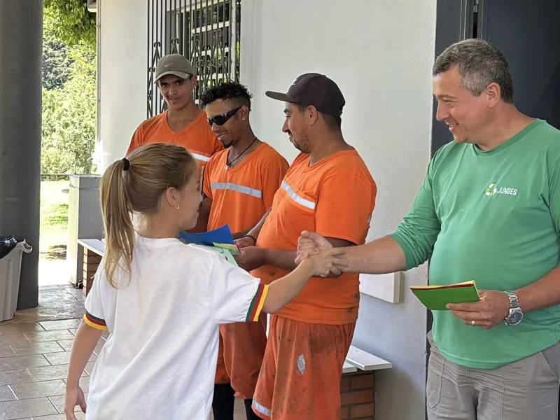 Já no dia 21 de outubro, data em que se comemora o Dia Nacional do Coletor de Lixo, os alunos da Escola Padre Amstad produziram cartões e presentearam os funcionários da Junges Soluções em Limpeza Urbana, empresa responsável pela coleta de lixo em Nova Petrópolis.