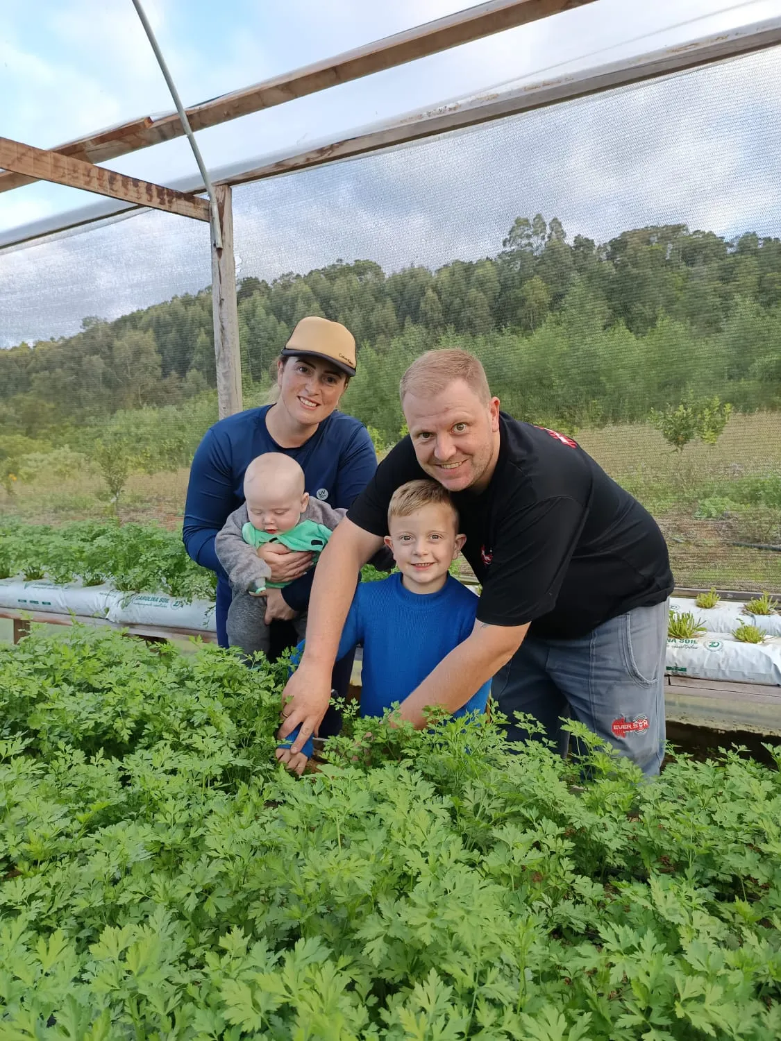 Mesmo em meio à dor, Daiana não permitiu que o legado do pai se perdesse. Com o apoio do marido, Everson, que ajuda nas entregas, ela assumiu sozinha a produção nas estufas. Além disso, concilia a vida no campo com a maternidade: é mãe do pequeno Lucca, de 5 anos, e do bebê Miguel, de apenas 4 meses.